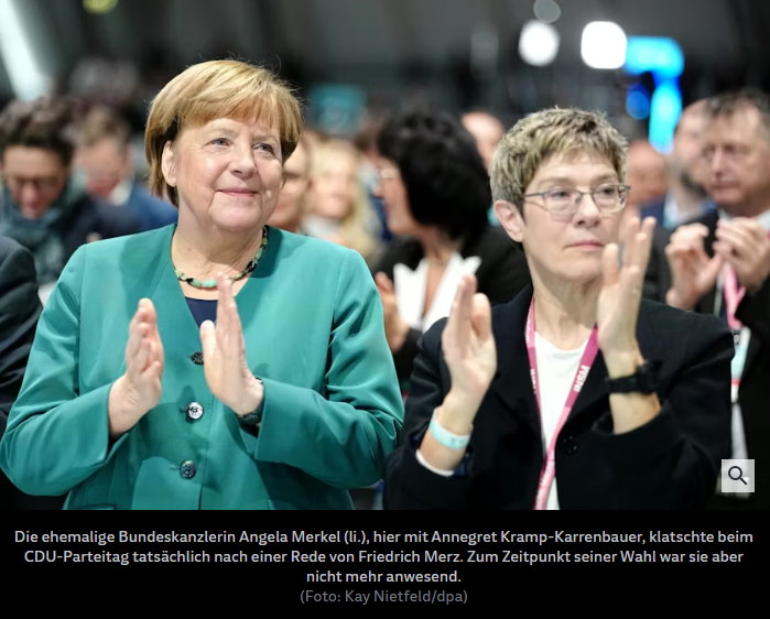 Nach dem ZDF, das in einem Beitrag KI-Bilder verwendete, nun auch bei der ARD eine falsche Darstellung. Merkel klatschte nicht bei der Wahl von Friedrich Merz zum Parteivorsitzenden. Sie hatte den Saal zu diesem Zeitpunkt schon längst verlassen.